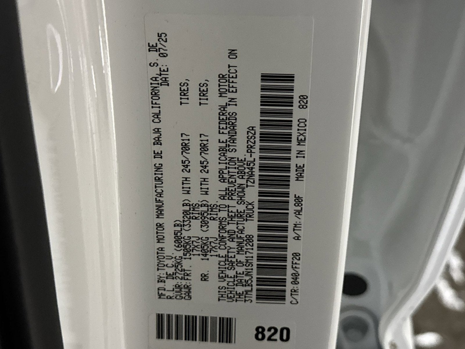 - Front Tire Size: P245/70TR17