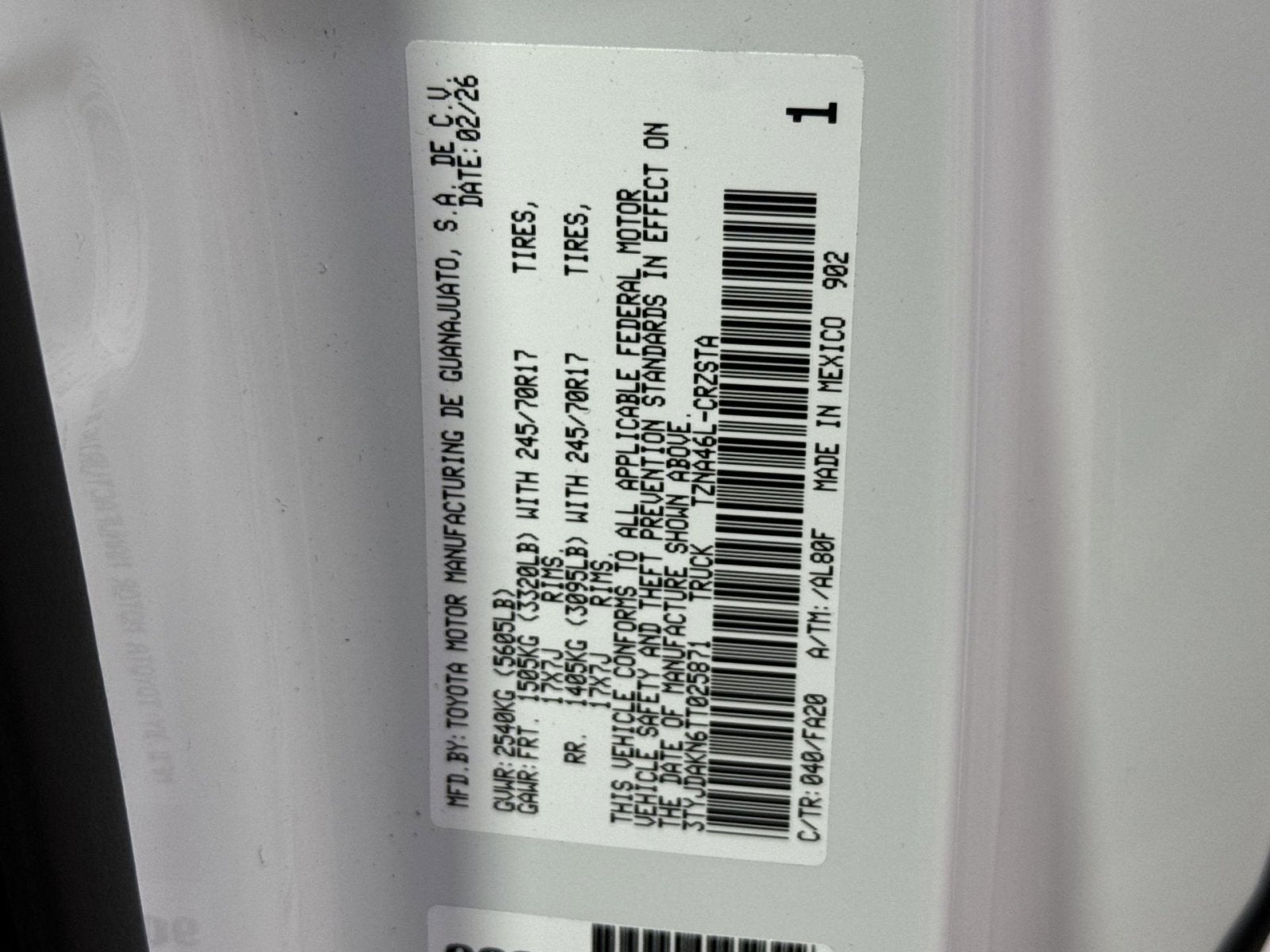 - Front Tire Size: P245/70TR17